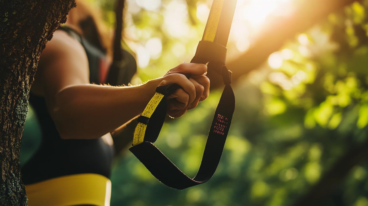 Une fois votre point d'ancrage validé et sécurisé, l'ajustement précis de la hauteur et de la tension des sangles déterminera l'efficacité de votre entraînement. Les sangles ajustables du TRX permettent de moduler l'intensité des exercices simplement en modifiant l'angle de votre corps par rapport au sol. Pour les exercices de tirage TRX et les fentes avant TRX, une longueur moyenne convient généralement, tandis que les pompes TRX et les planches avec les pieds dans les sangles nécessitent souvent une longueur plus courte. Les exercices avancés comme les dips TRX requièrent une configuration spécifique avec les poignées positionnées à hauteur de poitrine environ. Pour le pistol squat TRX, un réglage permettant une prise confortable à hauteur d'épaule facilitera l'équilibre durant l'exercice. Prenez le temps d'expérimenter différentes hauteurs pour chaque mouvement et notez les configurations qui vous conviennent le mieux. Cette personnalisation garantit une posture optimale et maximise l'engagement musculaire tout en préservant vos articulations.